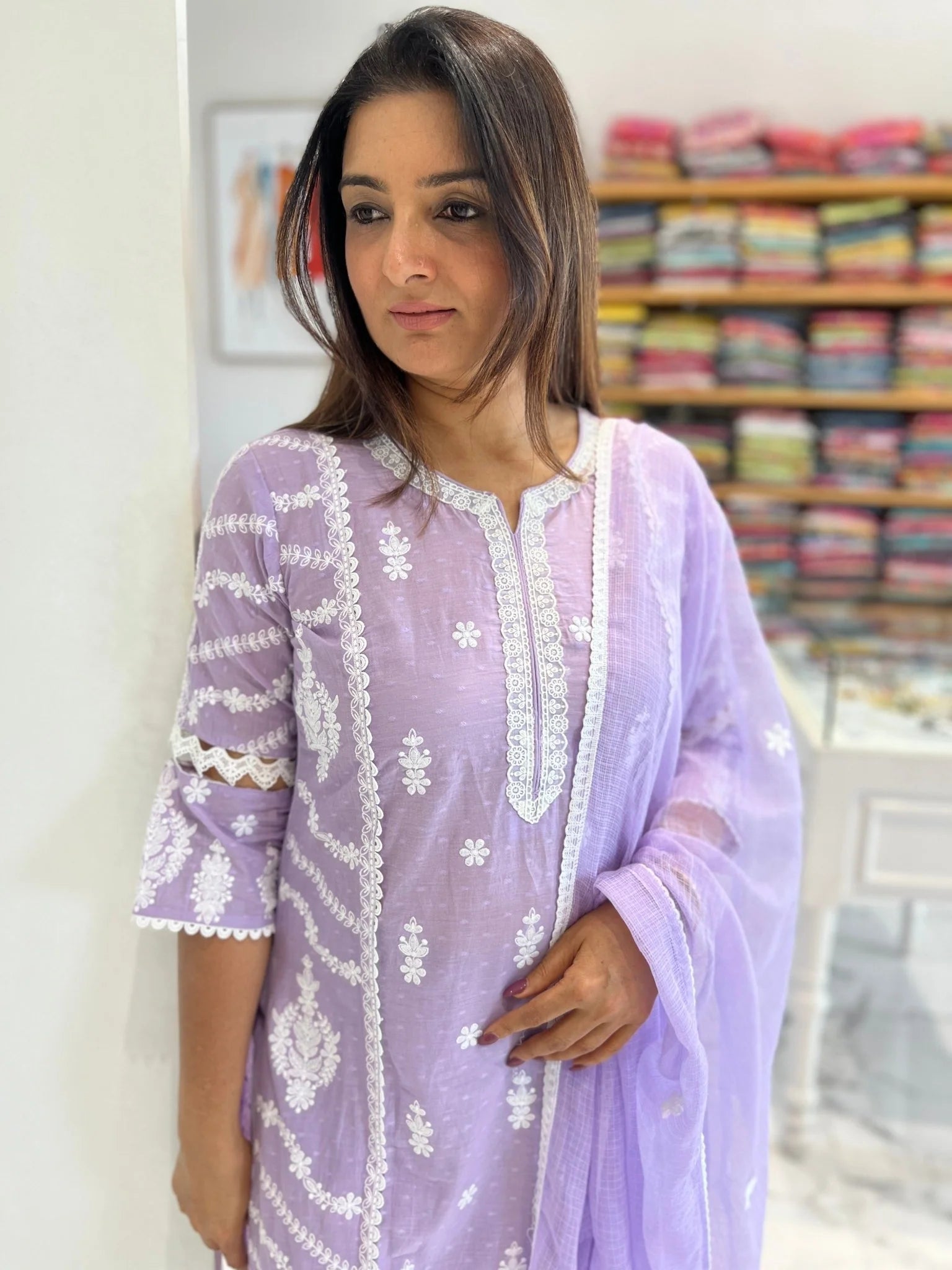 Lilac Dream Ivory Embroidery Doriya Dupatta Set